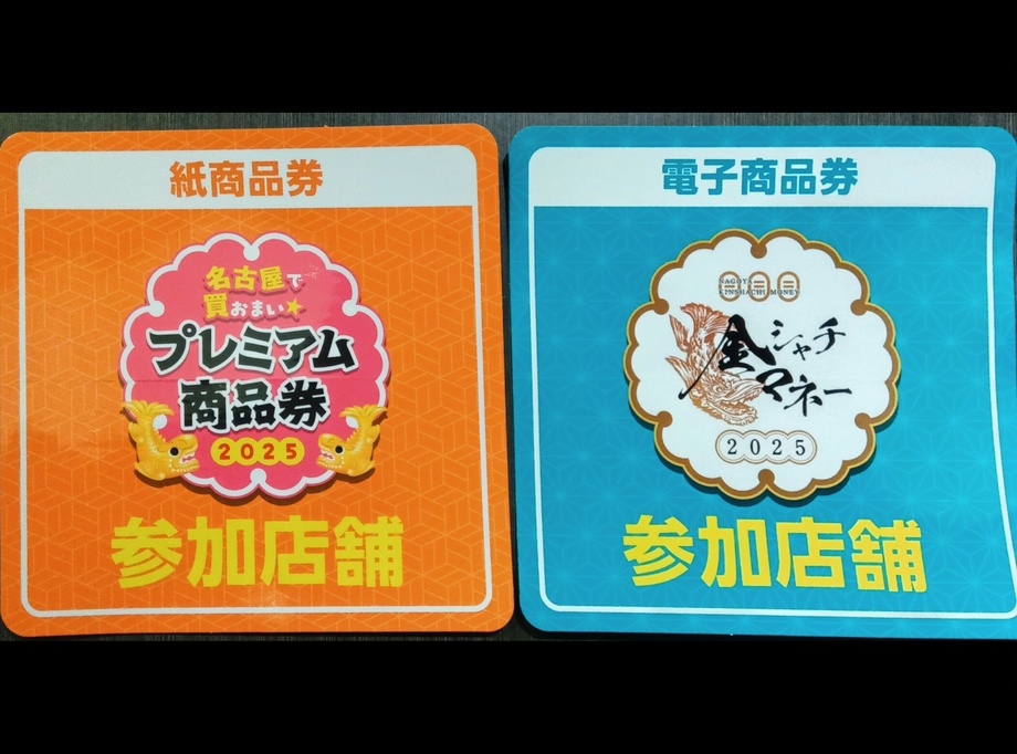 《名古屋で買おまい★プレミアム商品券》と《金シャチマネー》が、当店でも本日より飲食料金のお支払いにご利用いただけます。
