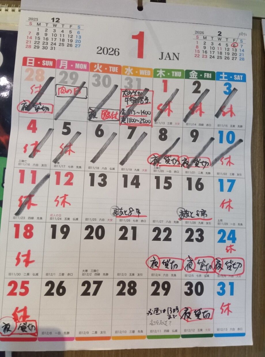 1/11更新【1月営業カレンダー】
