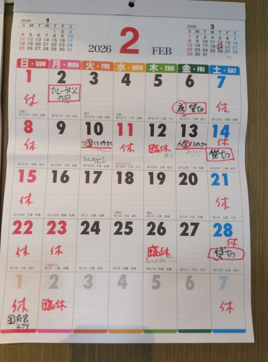 【2月営業カレンダー】